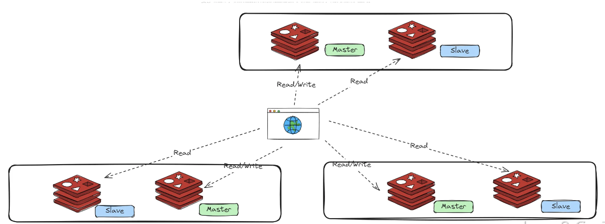Cluster模式的特点是数据分片存储在不同的节点上,每个节点都可以单独对外提供读写服务。不存在单点故障的问题。